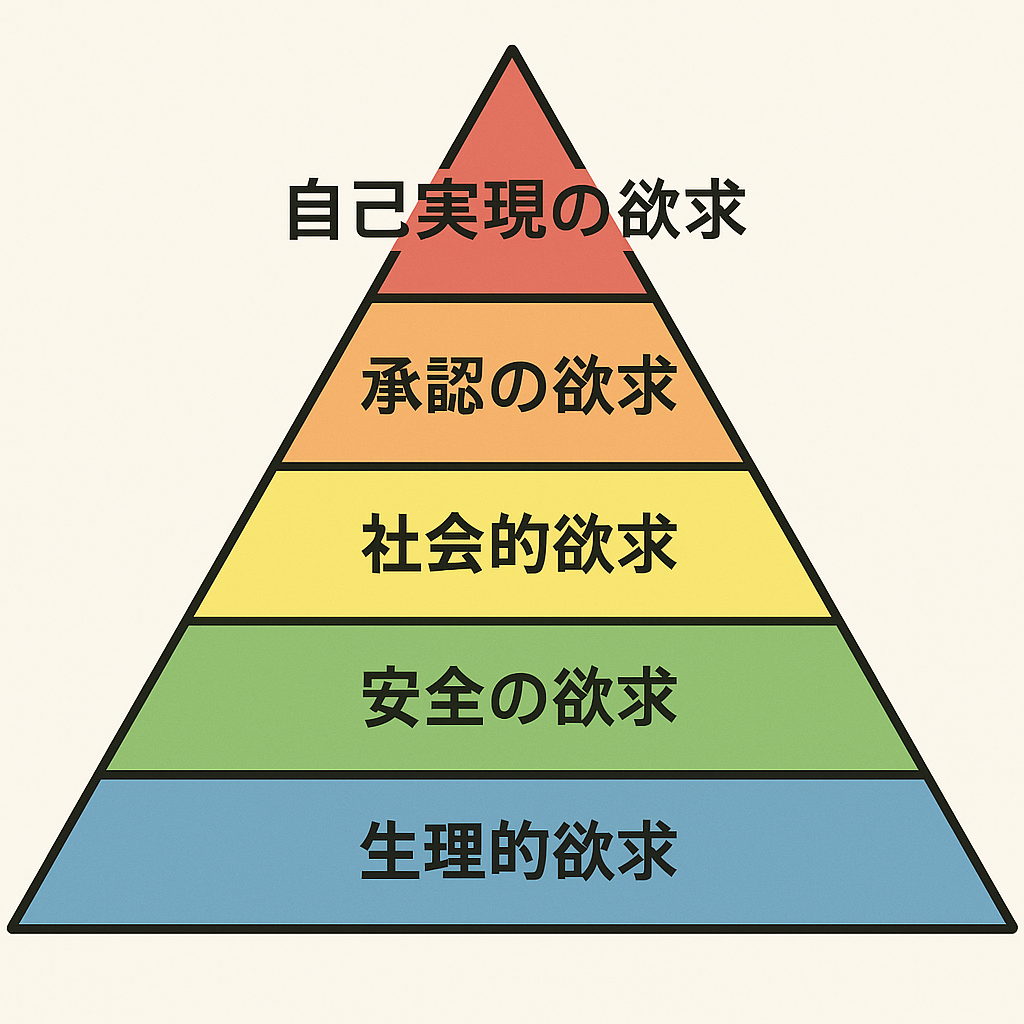 マズローの5段階欲求説によると、下から順番に欲求を満たして、自己実現に至る(もちろん長い人生、この5段階を行ったり来たりします)と考えます。今いる地点から上の場所、違う場所があることに気が付くと、より良い生活、より良い自分を目指して上りたくなるのが人間の性のようです。